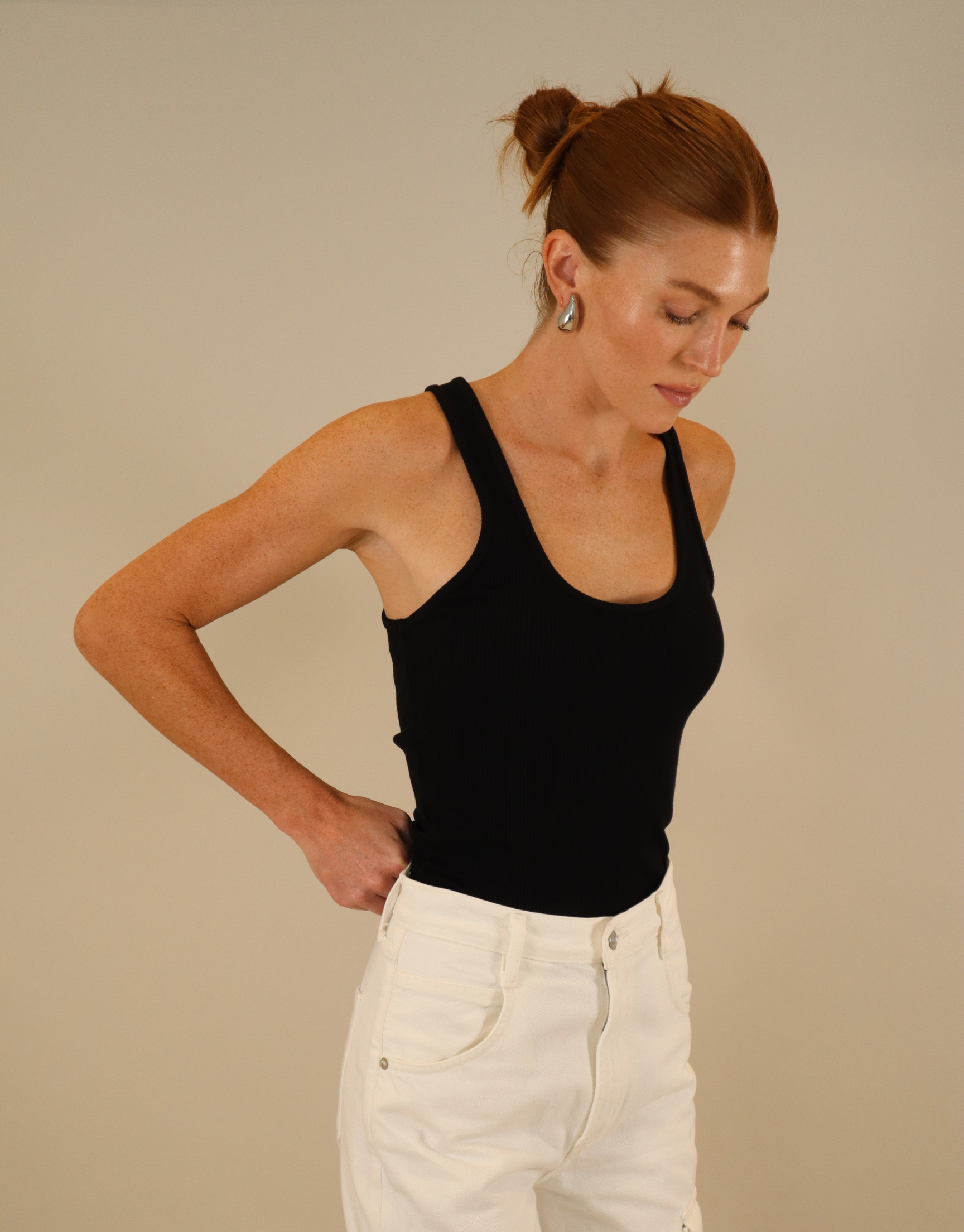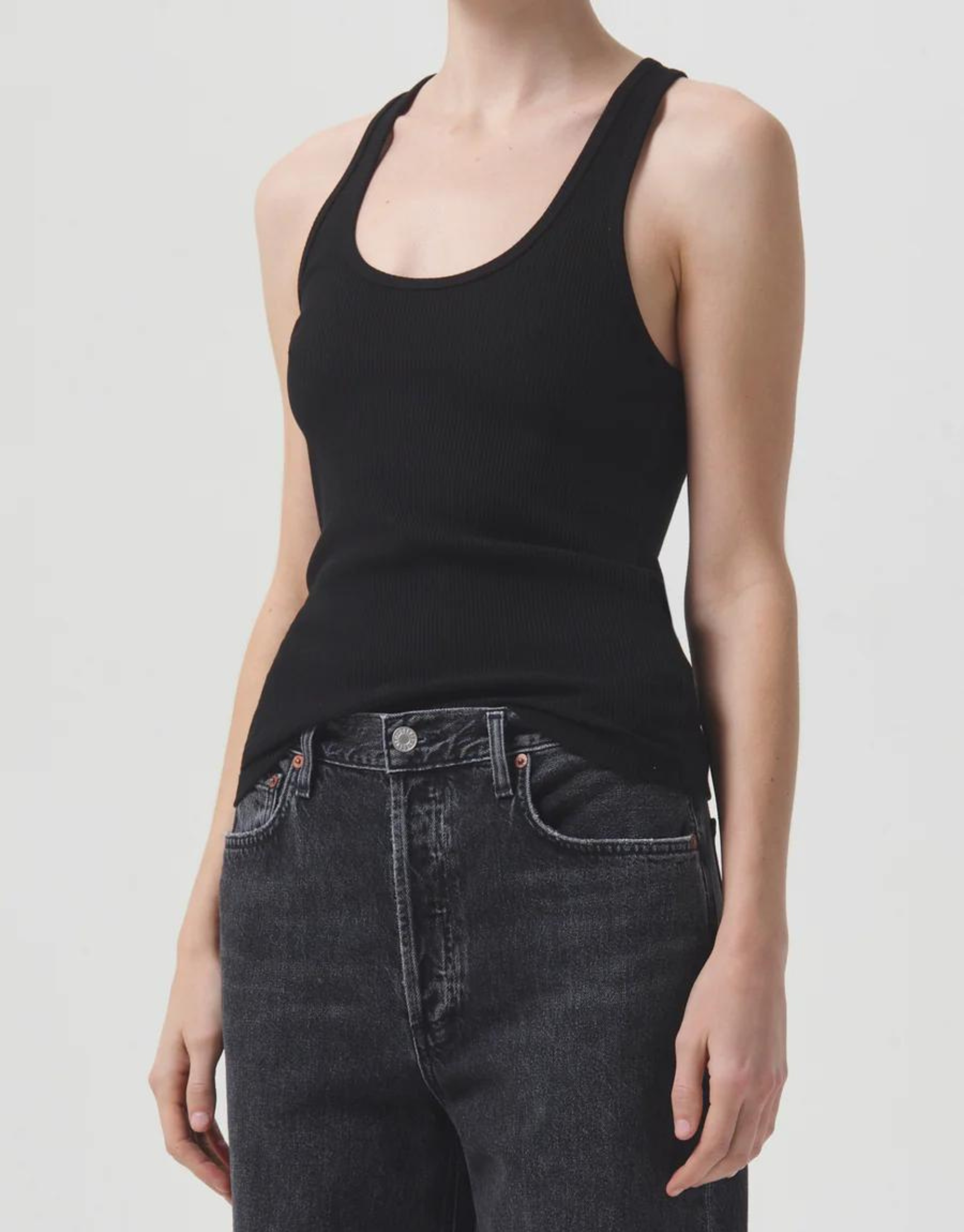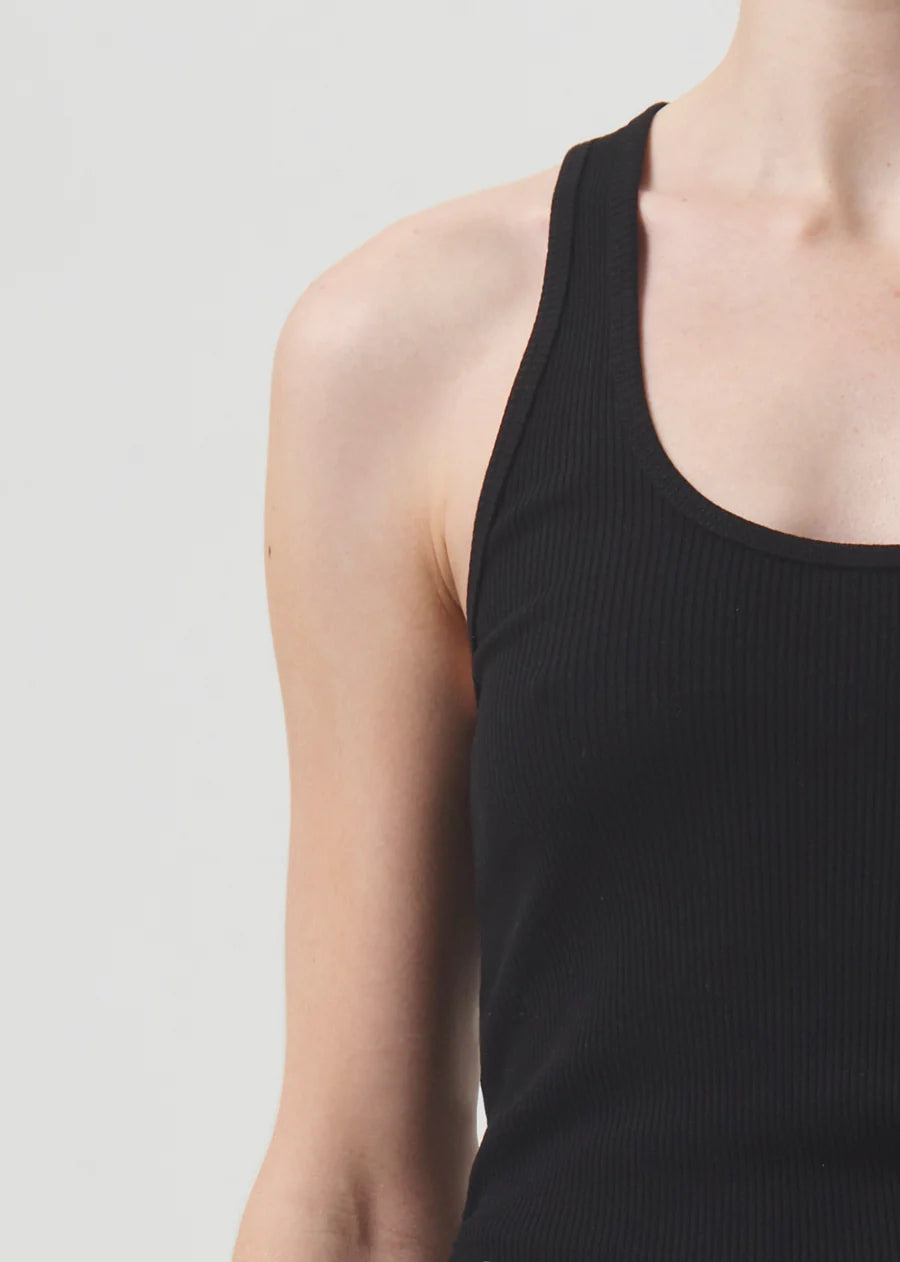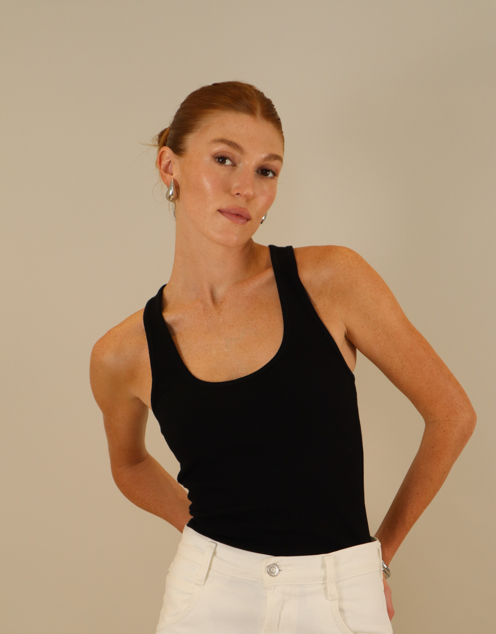 This essential piece gets an upgrade. Our Bianca tank features a timeless ribbed-knit design, snug fit, and the versatility to be dressed up or down.