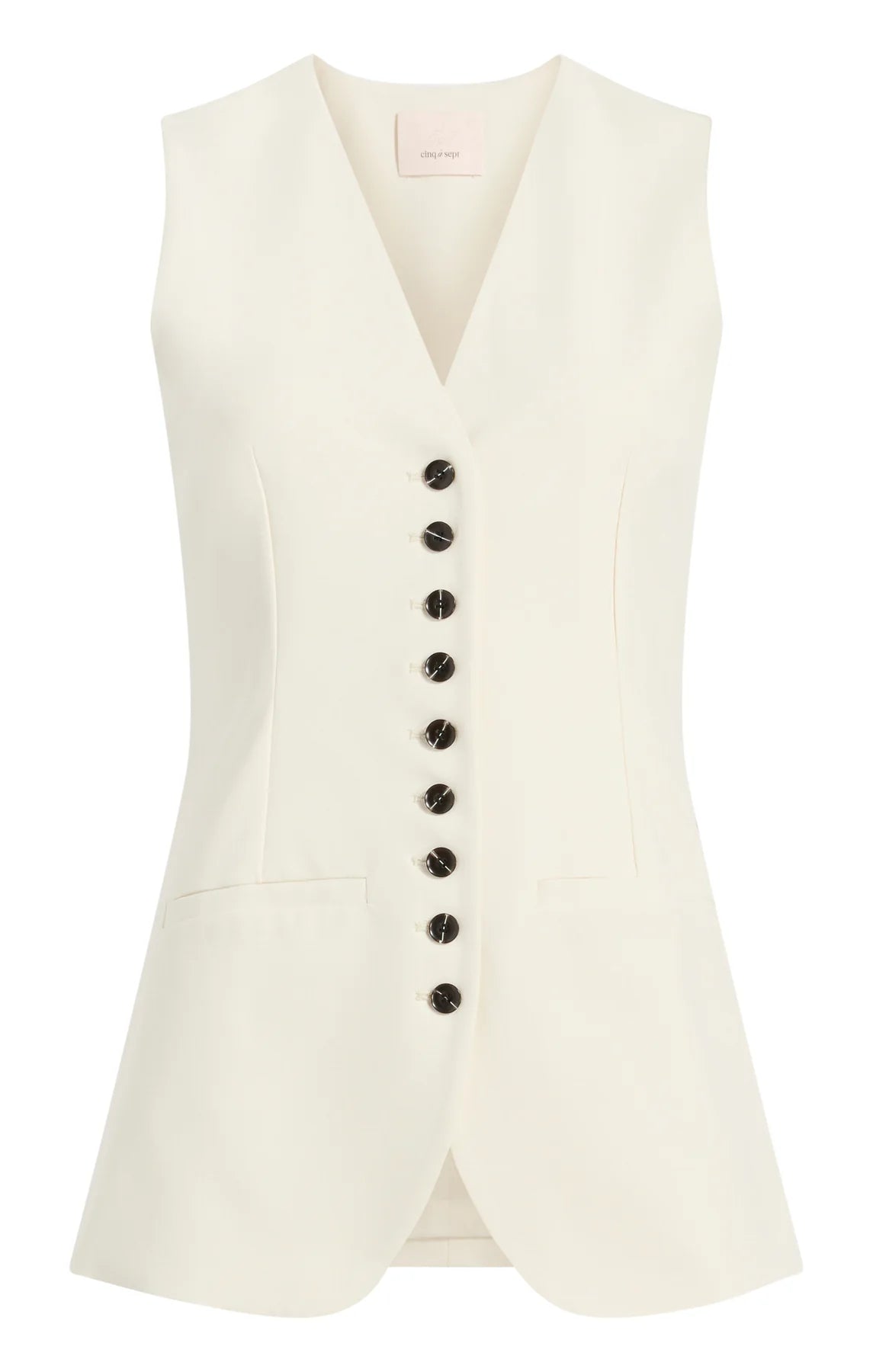 Our Kallen Vest features a flattering V-neckline and a rounded hem, offering a sleek, contemporary silhouette. With its minimalist design and versatile fit, this vest effortlessly elevates any outfit. Timeless and effortlessly chic, the Kallen Vest is a wardrobe essential for every season.